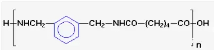 尼龍-mxd6是由三菱氣體化學公司從m-xylenediamine(mxda)生產的廣泛的聚酰胺的通用名稱。它是由間苯二甲胺mxda與己二酸的縮聚而產生的結晶聚酰胺。與尼龍6和尼龍66不同,尼龍mxd6是一種脂肪族聚酰胺,其主鏈中含有一個芳環(huán)。化學結構如下: